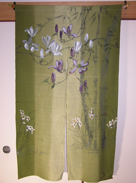 ドウサ液と胡粉で冬の雪景色を描きました。