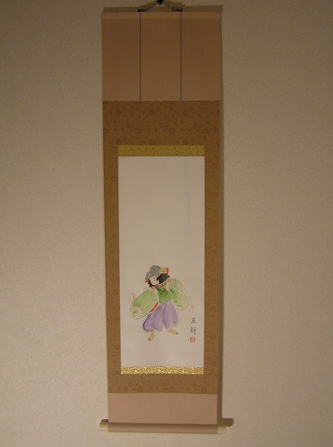 初めに線描きをし、着物を塗るときに立体感を出す為に一筆で塗る。